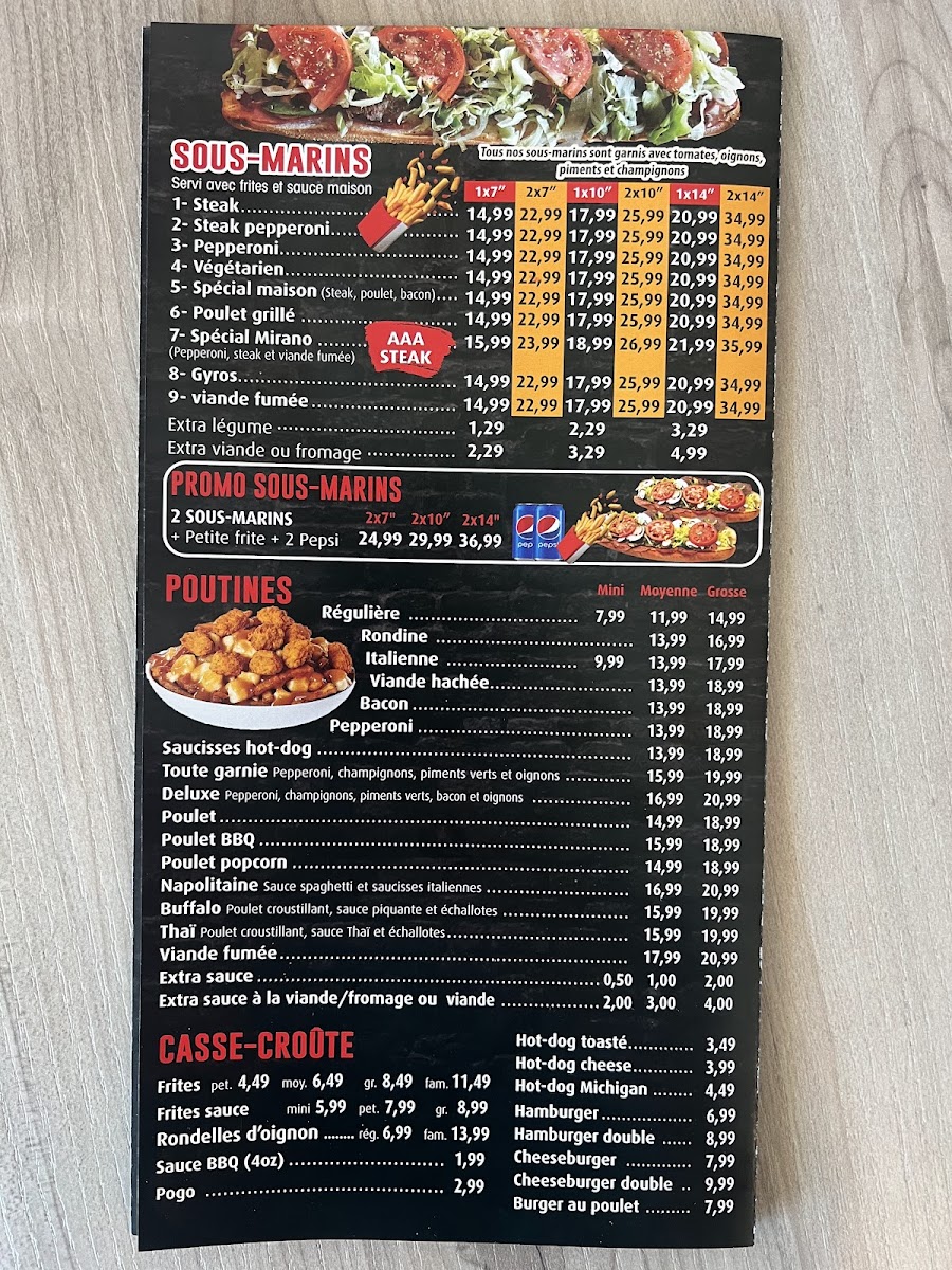 Welcome to Mirano Pizza, a delightful gem located at 306 Boulevard Yvon-L'Heureux N in Beloeil, QC. Offering an inviting menu, Mirano specializes in a variety of mouthwatering pizzas, including their signature Supreme Pizza loaded with ground meat, ham, bacon, and mozzarella, perfectly priced at CA$33.99 for two 10” pies.